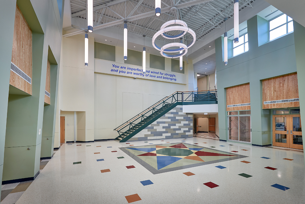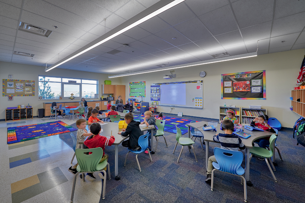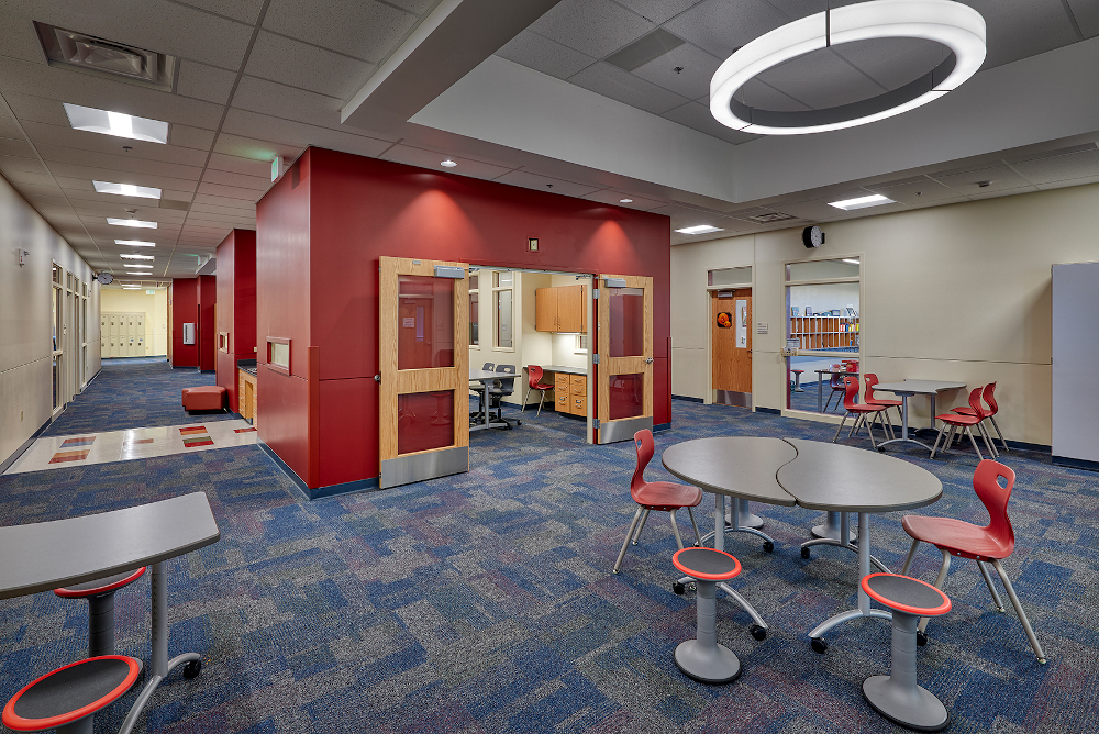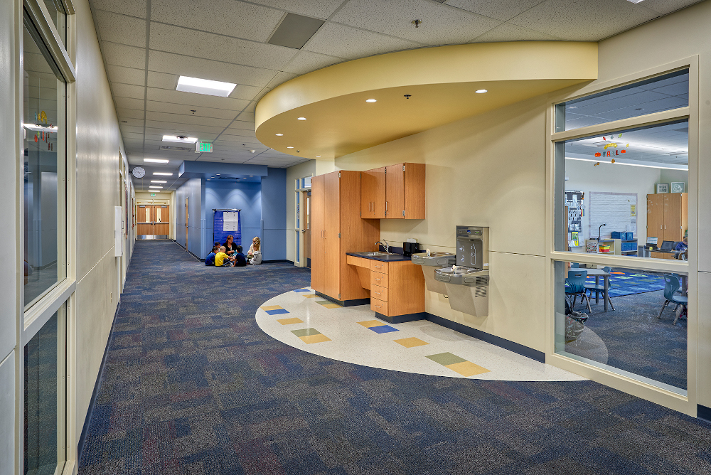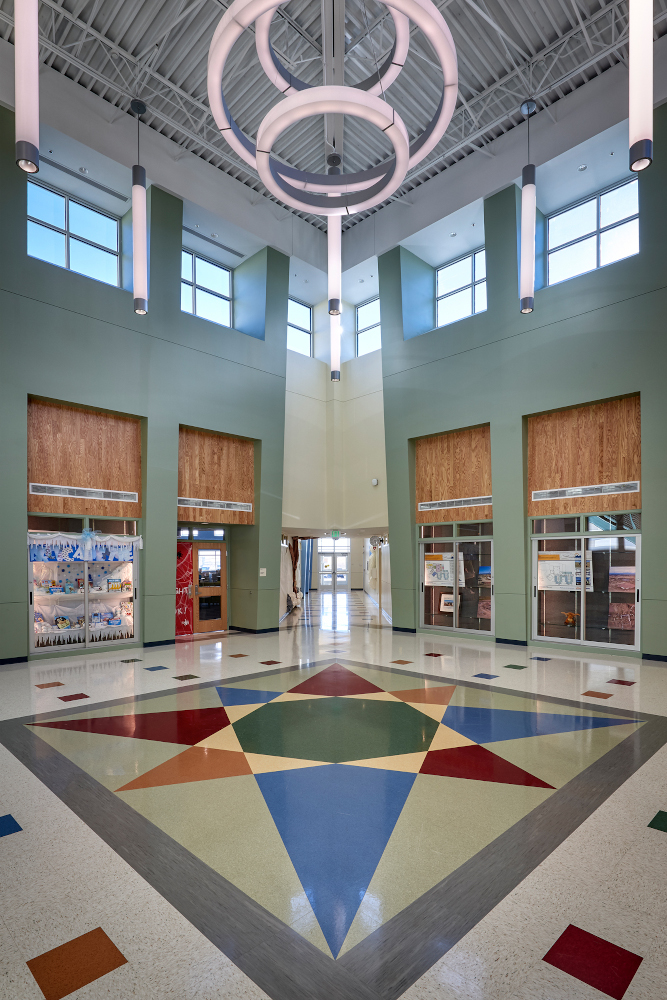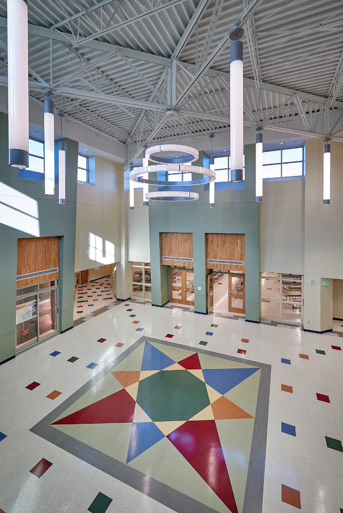 The owner’s intent, and the Design Team’s charge, for this project was to provide a school that is as efficient and comfortable as possible, within an achievable construction budget. Great care was taken to create a learning environment that will be safe, pedestrian friendly, easily accessible, and conducive to learning and creativity. Upon its completion in August of 2019, the PK-8 school has gained innovation status from the Colorado Department of Education, by weaving computer science and coding into all core subjects in all grades. .